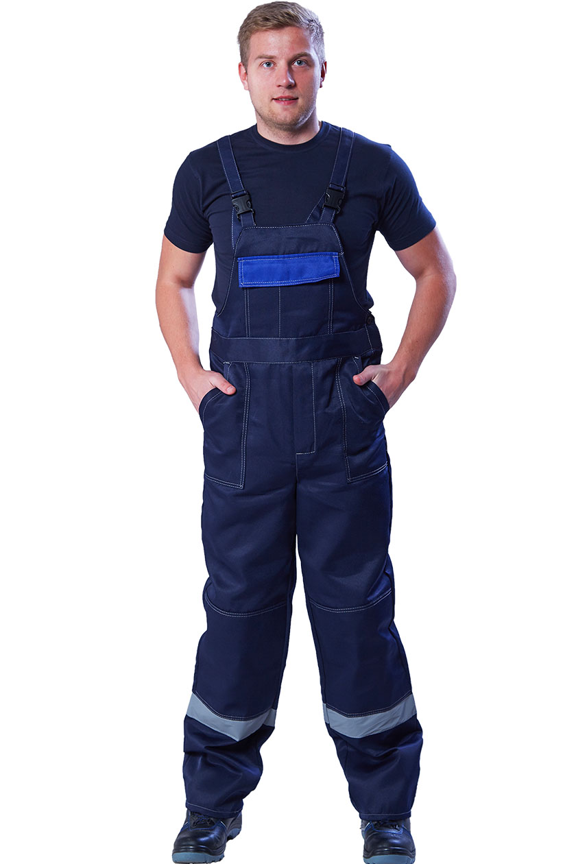 ➠ Полукомбинезон с застежкой гульфика на тесьму «молния» и застежкой в правом боковом шве на пуговицы. Два накладных кармана с наклонным входом. В области коленей усилительные накладки. На правой задней половинке накладной карман. На грудке накладной карман с клапаном. По низу брюк СОП 50 мм.